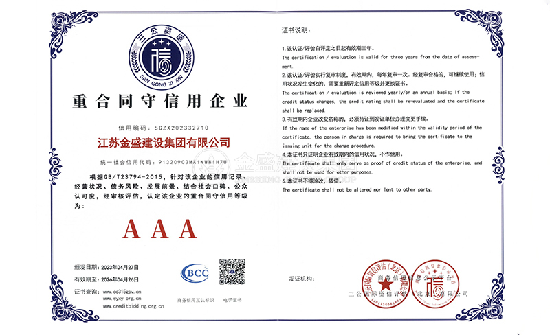 3A級(jí)資信等級(jí)證書
